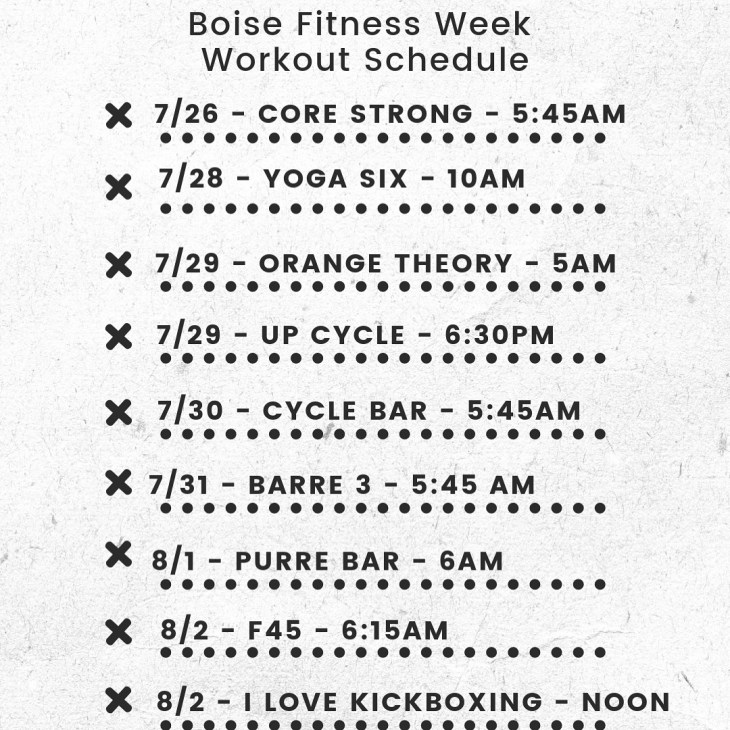 Boise Fitness Week 7/26/2019 -8/4/2019